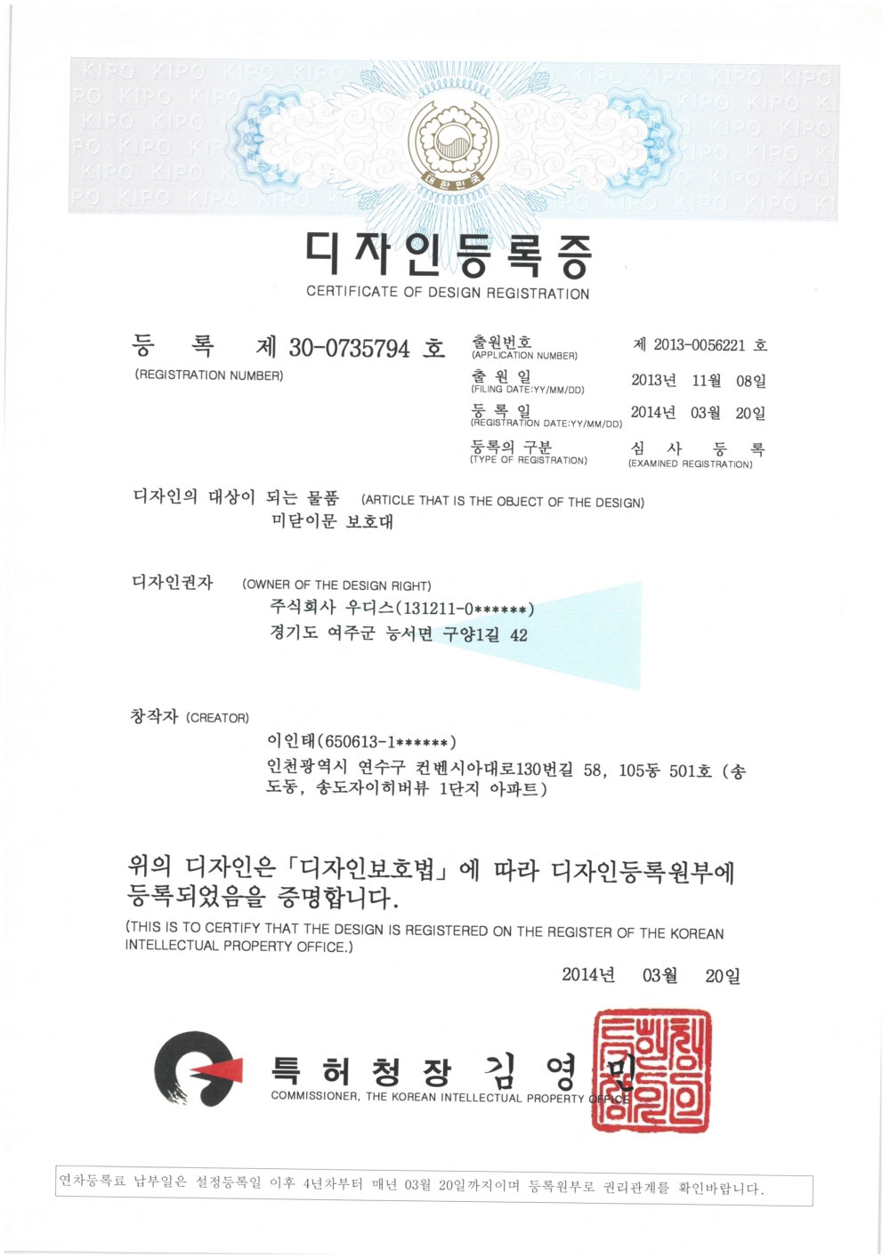 [특허증] 자동 브레이크 수단을 구비한 미서기문